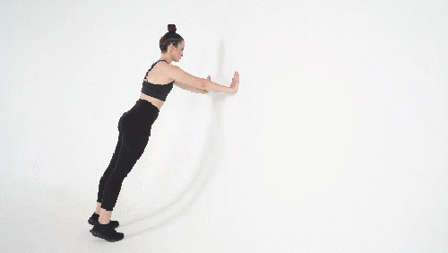 벽 앞에 서서 준비하세요. 그리고 손으로 벽을 짚습니다. 그런 다음 팔꿈치를 구부리면서 몸을 벽 방향으로 내렸다가 원래 자세로 돌아오면 되는데요. 몸은 구부러짐 없이 곧게 뻗은 상태로 진행합니다. 1분 동안 반복하세요.
