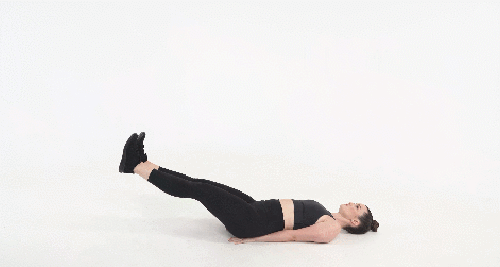 매트에 누운 후, 상체를 바닥에 고정합니다. 그리고 다리를 들고, 무릎을 구부리세요. 그런 다음 오른쪽 다리를 내리면서 발끝을 터치하고 돌아오고, 왼쪽 다리를 내리면서 발끝을 터치하고 돌아옵니다. 1분간 천천히 운동하세요.