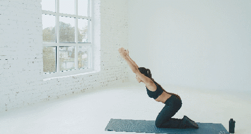 매트에 무릎을 꿇고 앉습니다. 그리고 엉덩이를 들고, 팔을 머리 위로 뻗으세요. 그런 다음 상체를 앞으로 숙이면서 자세를 유지합니다. 엉덩이가 발꿈치에 닿지 않도록 자세를 유지하고, 1분 동안 반복적으로 움직입니다.