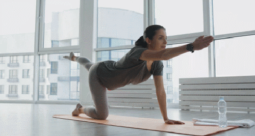 매트에 엎드려서 네발기기 자세를 만드세요. 그리고 오른팔을 앞으로 뻗으면서 왼발을 뒤로 뻗어줍니다. 자세를 유지하면서 2초 정도 버텼다가 원래 자세로 돌아오세요. 이번에는 왼팔과 오른발을 뻗어줍니다. 1분 동안 운동하세요.