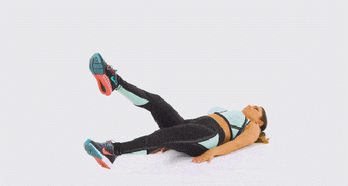 매트에 등을 대고 눕습니다. 손은 골반 아래로 이동하거나 바닥을 지탱하세요. 다리를 공중으로 들어줍니다. 왼발을 공중으로 들었다가 내리면서 오른발을 공중으로 들어줍니다. 다리를 번갈아 빠르게 움직이세요. 1분 동안 운동합니다.