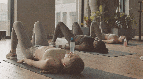 매트에 누운 후 무릎을 세우고, 발을 바닥에 붙입니다. 등을 바닥에서 떨어뜨리고, 엉덩이를 공중으로 들어줍니다. 브릿지 자세에서 엉덩이를 바닥으로 내렸다가 들면 되는데요. 1분 동안 업다운 동작을 반복합니다.
