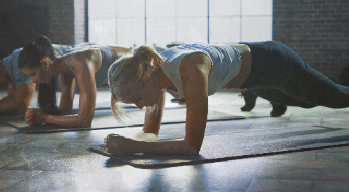 매트에 팔뚝을 대고 엎드리세요. 팔꿈치 플랭크 자세를 만듭니다. 어깨와 팔꿈치 라인을 직선으로 맞추고, 최대한 버티면 되는데요. 몸을 전체적으로 곧게 뻗고, 시선은 바닥을 향합니다. 1분 동안 버티면서 호흡하세요.