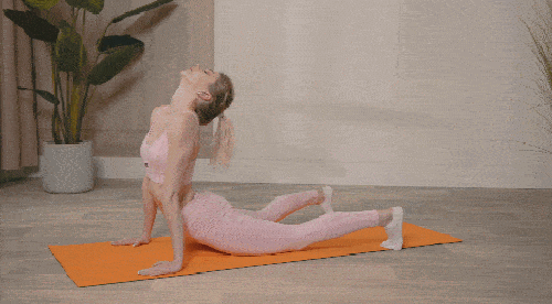 매트에 엎드려서 골반을 바닥에 붙인다는 생각으로 상체는 일으킵니다. 코브라 자세로 시작하세요. 엉덩이를 들면서 상체를 바닥으로 내리고, 다운도그 자세로 전환합니다. 2가지 동작을 1분 동안 진행하세요.