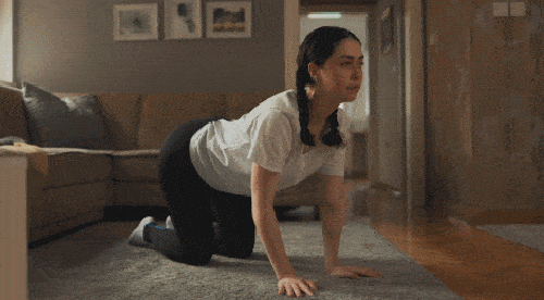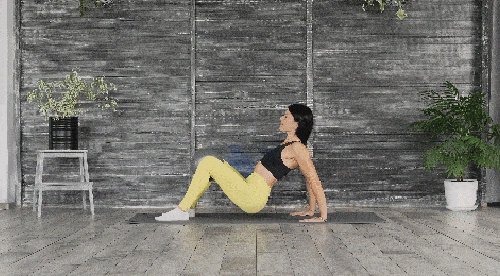 매트에 앉아서 다리는 펴줍니다. 손을 바닥으로 누르면서 엉덩이를 들고, 테이블 모양으로 자세를 만드세요. 엉덩이를 내렸다가 드는 동작을 반복하면 되는데요. 1분 동안 업다운 동작을 진행합니다. 다리 사이에 수건이나 공을 끼우면, 효과를 높일 수 있습니다.