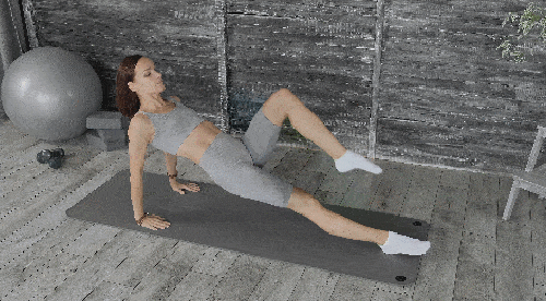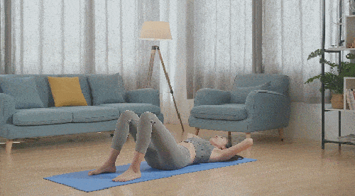 매트에 누운 상태에서 손을 바닥으로 누르세요. 몸을 공중으로 띄웁니다. 리버스 플랭크 자세를 만듭니다. 오른쪽 무릎을 상체 방향으로 당겼다가 내립니다. 왼쪽 무릎을 상체 방향으로 당겼다가 내리세요. 다리를 번갈아 당겨줍니다. 1분간 운동하세요.