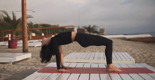 매트에 엉덩이를 대고 앉아서 다리를 펴줍니다. 손과 발을 바닥으로 누르면서 몸을 공중으로 들어주세요. 테이블 모양으로 자세를 만듭니다. 어깨에서 무릎으로 이어지는 라인을 직선으로 유지합니다. 1분 동안 최대한 버티는 동작을 반복하세요.