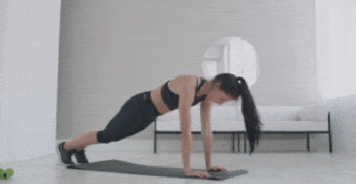 매트에 플랭크 기본자세로 엎드립니다. 시선은 바닥을 향하고, 팔꿈치는 펴주세요. 점프 동작과 함께 다리를 벌렸다가 점프 동작과 함께 다리를 모아주세요. 1분 동안 반복하면 되는데요. 상체는 안정적으로 고정하고, 균형을 유지하세요.