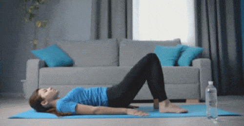매트에 누운 상태에서 무릎을 세우고, 발은 바닥에 고정합니다. 팔을 바닥으로 누르면서 몸을 공중으로 띄우세요. 몸을 사선으로 만들고 천천히 바닥으로 내립니다. 다시 엉덩이를 들었다가 내리는 동작을 진행하세요. 1분간 운동합니다.