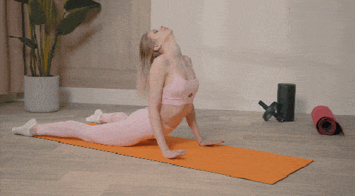 매트에 엎드려서 시작하세요. 상체를 일으키면서 코브라 자세를 만듭니다. 머리를 뒤로 젖히면서 스트레칭을 강화하세요. 엉덩이를 들고, 상체를 내리면서 고양이 기지개 자세로 전환하세요. 손을 앞으로 뻗고, 가슴을 바닥으로 내린다는 생각으로 운동합니다. 2가지 자세를 1분 동안 반복하세요.