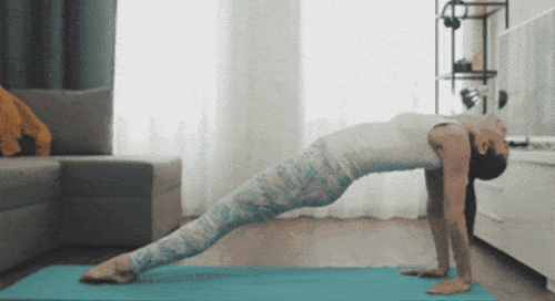 매트에 플랭크 기본자세로 엎드립니다. 팔꿈치를 펴고, 몸을 곧게 뻗은 상태를 유지하세요. 오른쪽 무릎을 당겼다가 되돌리면서 왼쪽 무릎을 당겨줍니다. 무릎을 번갈아 당겨주면 되는데요. 1분 동안 천천히 진행하세요.