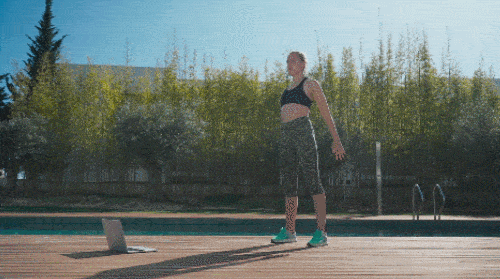 다리를 벌리고 매트에 서서 시작합니다. 무릎을 구부리면서 엉덩이를 낮추세요. 스쿼트 동작을 진행한 후, 원래 자세로 돌아옵니다. 팔은 엉덩이를 낮추면서 가슴 앞으로 뻗습니다. 원래 자세로 돌아오면서 팔은 내려주세요. 1분간 운동하세요.