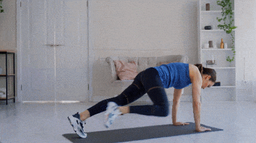 매트에 플랭크 자세로 엎드려서 준비하세요. 왼쪽 다리를 왼쪽 바깥 방향으로 당겼다가 되돌립니다. 이번에는 오른쪽 다리를 오른쪽 방향으로 당겼다가 되돌립니다. 스파이더 플랭크 동작을 1분간 진행하세요. 시선은 바닥을 응시합니다.