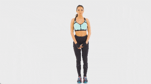 바닥에 서서 다리를 넓게 벌립니다. 시선은 정면을 응시하세요. 오른쪽 무릎을 구부리면서 상체를 이동했다가 돌아옵니다. 이번에는 쪽 무릎을 구부리면서 상체를 이동하세요. 1분 동안 운동합니다.