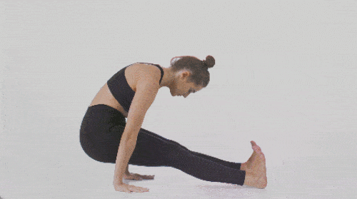 매트에 엎드려서 다운도그 자세를 만듭니다. 왼쪽 다리를 공중으로 뻗으세요. 다리를 당기면서 플랭크 자세를 만드세요. 다리를 뻗으면서 원래 자세로 돌아옵니다. 30초 운동하세요. 오른쪽 다리를 뻗었다가 당기는 동작으로 30초 반복합니다.