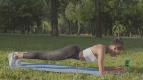 매트에 플랭크 기본자세로 엎드리세요. 오른쪽 무릎을 당겼다가 되돌리면서 왼쪽 무릎을 당겨줍니다. 무릎을 번갈아 빠르게 당겨주면 되는데요. 팔꿈치는 펴주고, 시선은 바닥을 바라봅니다. 1분 동안 진행하세요.