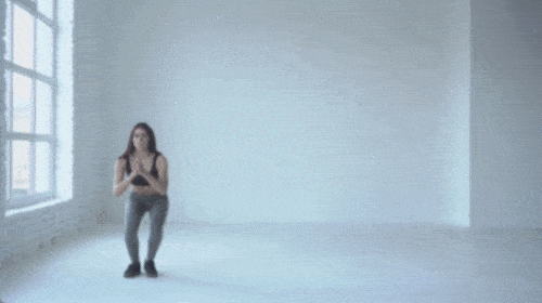 바닥에 서서 시작하세요. 왼발을 왼쪽으로 내딛고, 무릎을 구부리면서 스쿼트 자세를 만듭니다. 손은 가슴 앞에서 모아주세요. 자세를 유지한 상태에서 왼쪽으로 이동합니다. 이번에는 자세를 유지한 상태로 오른쪽으로 이동하세요. 1분간 반복합니다.