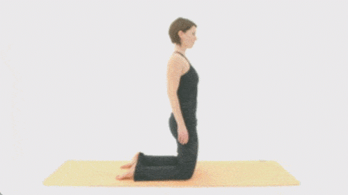 매트에 무릎을 꿇고 앉으세요. 상체는 일으켜 세웁니다. 손을 뒤로 뻗으면서 상체를 천천히 뒤로 젖히세요. 손으로 발목을 잡거나 발꿈치를 잡습니다. 버티는 시간을 점차 늘리세요. 1분간 진행하세요.