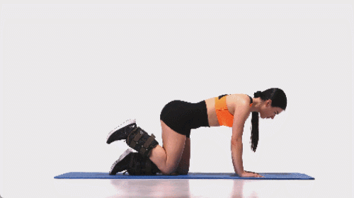 매트에 손과 무릎을 대고 엎드립니다. 팔꿈치를 완전히 펴주세요. 오른발을 뒤로 뻗어줍니다. 업다운 동작을 30초 진행하세요. 이번에는 왼발을 뒤로 뻗어주세요. 업다운 동작을 30초 반복합니다. 운동 중에는 무릎의 구부린 각도를 90도로 최대한 유지하세요.