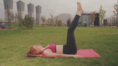 매트에 등을 대고 완전히 눕습니다. 손은 바닥에 붙이거나 골반 아래로 이동하세요. 다리를 공중으로 들어줍니다. 이때 다리 사이가 벌어지지 않도록 힘을 유지합니다. 복부에 힘을 주면서 허리가 뜨지 않도록 하세요. 레그레이즈 동작을 1분간 진행하세요.