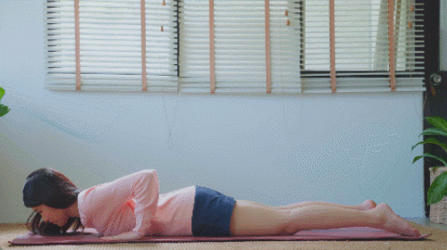 매트에 엎드린 상태에서 시작합니다. 손바닥을 바닥에 짚고, 상체를 천천히 일으킵니다. 골반은 바닥에 붙인다는 생각으로 고정하세요. 상체를 최대한 확장하고, 자세를 유지하며 버티세요. 1분 동안 운동합니다.