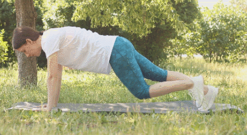 매트에 엎드려서 팔뚝으로 몸을 지탱하세요. 팔꿈치 플랭크 자세를 만듭니다. 오른쪽 무릎을 당겼다가 되돌리면서 왼쪽 무릎을 당겨주세요. 무릎을 번갈아 당겨주는 동작을 진행하세요. 시선은 바닥을 응시합니다. 1분 동안 운동하세요.