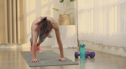 매트에 엎드려서 플랭크 자세로 시작합니다. 오른쪽 무릎을 왼쪽 팔꿈치를 향해 당겼다가 되돌리세요. 왼쪽 무릎을 오른쪽 팔꿈치로 당겼다가 되돌립니다. 다리를 번갈아 크로스 방향으로 당겨주면 되는데요. 1분 동안 운동합니다. 팔꿈치는 편 상태를 유지하세요.