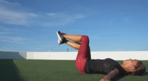 매트에 등을 대고 누운 상태에서 팔을 옆으로 펼칩니다. 다리를 들고, 무릎을 90도 각도로 구부리세요. 다리를 오른쪽으로 넘겼다가 돌아오세요. 다리를 왼쪽으로 넘겼다가 돌아옵니다. 다리를 좌우로 움직이면서 1분 동안 운동하세요.