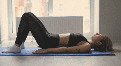 매트에 누운 상태에서 무릎을 세우고, 발은 바닥에 고정합니다. 팔을 바닥으로 누르면서 몸을 공중으로 띄우세요. 몸을 사선으로 만들고 천천히 바닥으로 내립니다. 다시 엉덩이를 들었다가 내리는 동작을 진행하세요. 1분간 운동합니다.