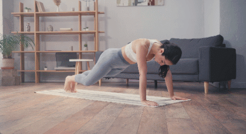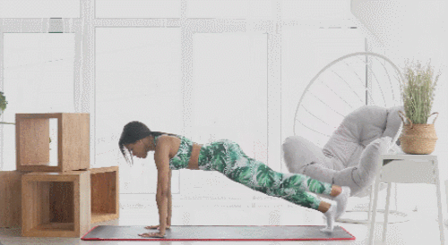 플랭크 기본자세로 매트에 엎드려서 시작하세요. 오른발을 공중으로 들었다가 내리고, 왼발을 공중으로 들었다가 내리세요. 1분 동안 반복합니다. 팔꿈치는 완전히 편 상태를 유지하고, 시선은 바닥을 응시합니다.