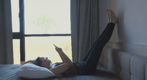 침대나 바닥에 누워서 시작합니다. 다리를 공중으로 들어주세요. 벽에 기대고 버티면 되는데요. 신체 상태에 따라 다리의 각도를 조절합니다. 무릎을 펴고, 호흡을 유지합니다. 1분 동안 운동하세요. 편안한 자세로 진행합니다.