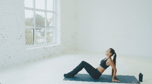 매트에 엉덩이를 대고 앉으세요. 다리는 펴줍니다. 손과 발을 누르면서 엉덩이를 들어주세요. 테이블 모양으로 자세를 만듭니다. 엉덩이를 바닥으로 내렸다가 드는 동작을 반복하세요. 1분 동안 진행합니다. 운동 중에는 엉덩이가 바닥에 닿지 않도록 합니다.