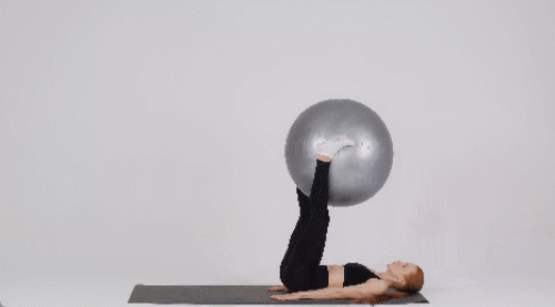 매트에 등을 대고 누워서 시작합니다. 다리 사이에는 짐볼을 끼우세요. 상체는 안정적으로 바닥에 고정합니다. 다리에 힘을 주고 짐볼을 천천히 들어 올립니다. 천천히 바닥으로 내리세요. 1분 동안 다리를 드는 동작을 반복합니다.