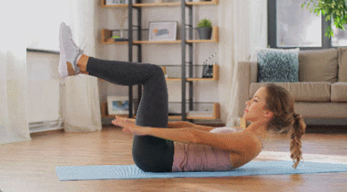 매트에 등을 대고 눕고, 다리는 들어서 무릎을 90도로 구부립니다. 상체를 일으키고, 팔은 앞으로 뻗으세요. 팔을 위아래로 움직이면 되는데요. 자세를 유지하면서 1분간 진행합니다. 호흡을 짧게 마셨다가 뱉으면서 운동하세요.