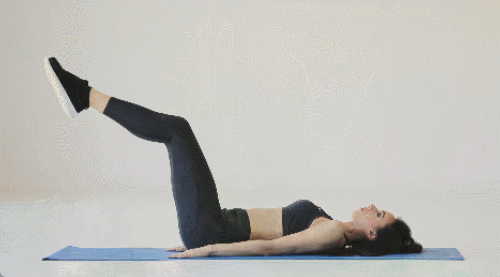 매트에 등을 대고 누워서 준비하세요. 손은 바닥을 짚거나 골반 아래로 이동합니다. 다리는 공중으로 들어주세요. 복부를 향해 당겼다가 내리면 되는데요. 무릎은 살짝 구부려도 무방합니다. 1분 동안 운동하세요.