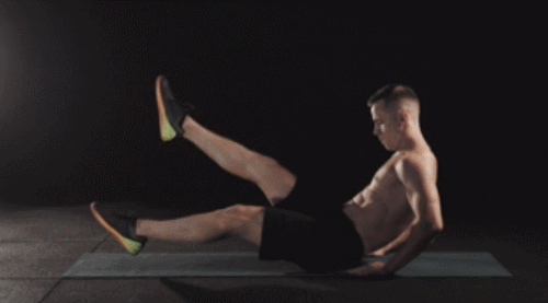매트에 누워서 준비하세요. 손을 바닥에 짚고, 상체를 일으킵니다. 복부에 힘을 유지하고, 다리는 공중으로 띄웁니다. 왼발을 공중으로 들었다가 내리면서 오른발을 들어주세요. 발을 번갈아 교차하면서 운동합니다. 1분 동안 진행하세요.