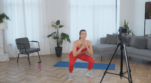 바닥에 서서 다리는 넓게 벌립니다. 자세를 낮추면서 스쿼트 동작을 진행하세요. 원래 자세로 돌아오면서 한쪽 무릎을 공중으로 당겨줍니다. 이번에는 스쿼트 후, 반대편 무릎을 공중으로 당겨주세요. 1분 동안 2가지 동작을 반복합니다.