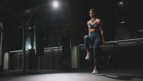 어깨너비로 다리를 벌리고 서서 시작합니다. 오른쪽 다리를 뒤로 뻗으면서 런지 동작을 진행하세요. 다시 돌아오면서 공중으로 들어서 킥 동작을 추가하세요. 손은 가슴 앞에서 모으고 진행합니다. 30초 운동 후, 반대편 다리로 30초 운동하세요.