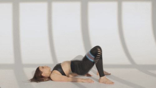 매트에 누운 후, 무릎을 세우고, 발을 바닥에 붙입니다. 등을 바닥에서 떨어뜨리고, 엉덩이를 공중으로 들어줍니다. 브릿지 자세에서 엉덩이를 바닥으로 내렸다가 들면 되는데요. 1분 동안 업다운 동작을 반복합니다.