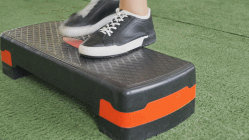 스텝박스나 오를 수 있는 도구 앞에 서서 시작합니다. 오른발을 도구 위에 올리고, 왼발을 올려줍니다. 오른발을 바닥으로 내리고, 왼발을 내려서 원래 자세로 돌아옵니다. 1분 동안 도구를 오르내리면서 운동하세요. 속도를 조절하면서 진행합니다.