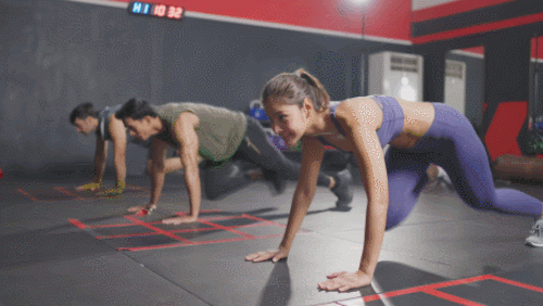 매트에 엎드려서 플랭크 자세를 잡으세요. 팔꿈치를 펴고, 자세를 안정적으로 잡습니다. 오른쪽 다리를 상체 방향으로 당겼다가 되돌리세요. 빠르게 왼쪽 다리를 당기는 동작으로 연결합니다. 다리를 번갈아 빠르게 움직이세요. 1분 동안 운동합니다.