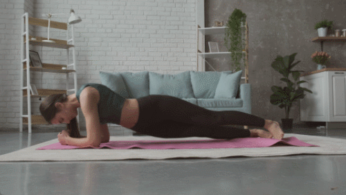 매트에 팔뚝을 대고 엎드리세요. 팔꿈치 플랭크 자세를 잡습니다. 시선은 바닥을 응시하세요. 엉덩이를 왼쪽으로 내렸다가 돌아옵니다. 엉덩이를 오른쪽으로 내렸다가 돌아오세요. 1분 동안 엉덩이를 좌우로 움직입니다. 운동 중에는 엉덩이의 움직임에 집중하세요.