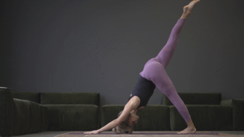 매트에 엎드려서 다운도그 자세로 시작합니다. 오른쪽 다리를 공중으로 들어서 운동 강도를 높이세요. 다리를 구부리거나 뻗어줄 수 있습니다. 30초 운동 후, 왼쪽 다리를 공중으로 드는 동작으로 30초 진행하세요.