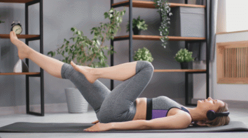 매트에 누운 후, 상체를 바닥에 고정합니다. 다리를 들고, 무릎을 구부리세요. 오른쪽 다리를 내리면서 발끝을 터치하고 돌아옵니다. 왼쪽 다리를 내리면서 발끝을 터치하고 돌아옵니다. 1분간 천천히 운동하세요.