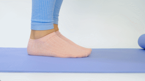 매트에 서서 호흡을 정리합니다. 발꿈치를 들었다가 내리는 동작을 진행하면 되는데요. 발꿈치를 들어서 최대한 버텼다가 천천히 원래 자세로 돌아옵니다. 한 발씩 들거나 앞뒤로 드는 동작을 추가할 수 있는데요. 1분 동안 진행합니다.