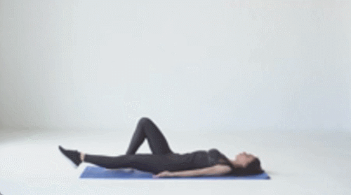 매트에 등을 대고 누운 상태에서 준비합니다. 오른쪽 무릎을 세우고, 왼쪽 다리는 앞으로 뻗습니다. 왼쪽 다리를 공중으로 들었다가 내리는 동작을 진행하세요. 30초 운동합니다. 다리의 위치를 바꿔서 오른쪽 다리를 드는 동작으로 30초 반복합니다.
