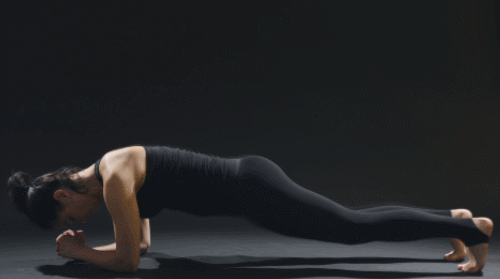 매트에 엎드려서 팔뚝으로 지탱하세요. 팔꿈치 플랭크 자세를 만듭니다. 엉덩이를 왼쪽으로 내렸다가 돌아오고, 오른쪽으로 내렸다가 돌아옵니다. 엉덩이를 좌우로 움직이면 되는데요. 속도를 점차 높이면서 1분 동안 반복합니다.