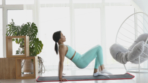 매트에 앉아서 시작하세요. 손과 발을 바닥으로 누르면서 엉덩이를 공중으로 들어 올립니다. 테이블 자세를 만드세요. 왼발을 공중으로 뻗으면서 오른손을 들어주세요. 손으로 발을 터치하고 돌아옵니다. 오른발을 들면서 왼손을 들고 반복합니다. 1분간 진행하세요.
