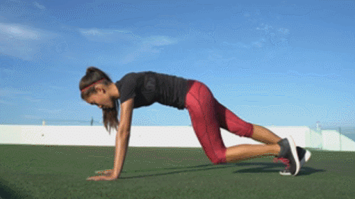 매트에 플랭크 기본자세로 엎드리세요. 오른쪽 무릎을 왼쪽 팔꿈치로 당겼다가 되돌립니다. 왼쪽 무릎을 오른쪽 팔꿈치로 당겼다가 되돌리세요. 시선은 바닥을 응시하면서 1분 동안 크로스 니업 동작을 진행하세요.