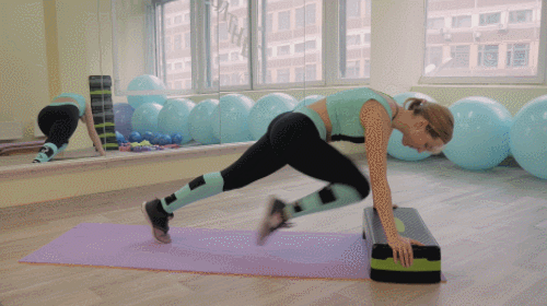 매트에 엎드려서 플랭크 자세를 잡습니다. 스텝박스 위에서 진행하거나 경사가 있는 곳을 활용할 수 있는데요. 오른쪽 무릎을 당겼다가 되돌리고, 왼쪽 무릎을 당겼다가 되돌립니다. 다리를 번갈아 당기는 동작으로 운동하세요. 1분 동안 진행합니다.